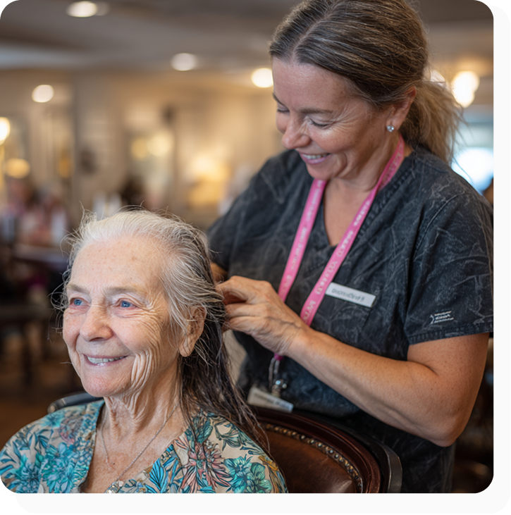 No travel. No waiting. Our partner facilities bring licensed stylists directly to residents’ doors — ensuring comfort, safety, and confidence with every visit.